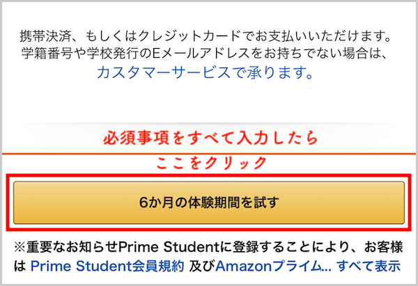 Prime Studentは6ヶ月無料体験できるのですが、無料お試しだけの人も、登録のためにクレジットカード類が必要です。